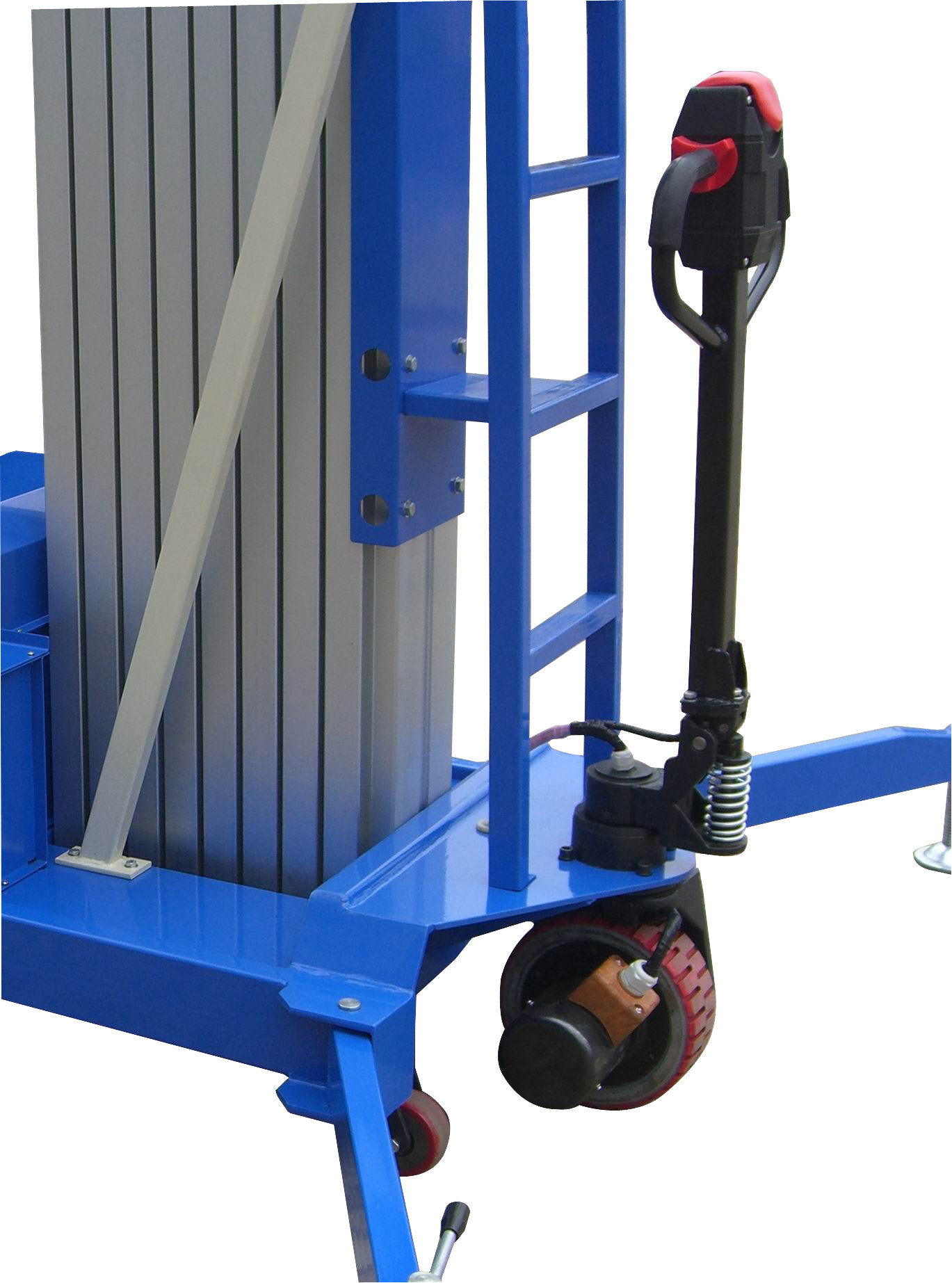 Mobile aluminum aerial work platform with motorized pulling device, compared with mast aluminum AWP, it is equipped with the electric motorized device with moving and turning function. It is in manually traction; easily move, saving manpower and time. Driven by hydraulic motor, turning and lifting by battery in DC power, no external power required. It brings more efficiency and convenience as an ideal and most useful aerial working facility. The electric Self-propelled device can be configured in any of the lifts.