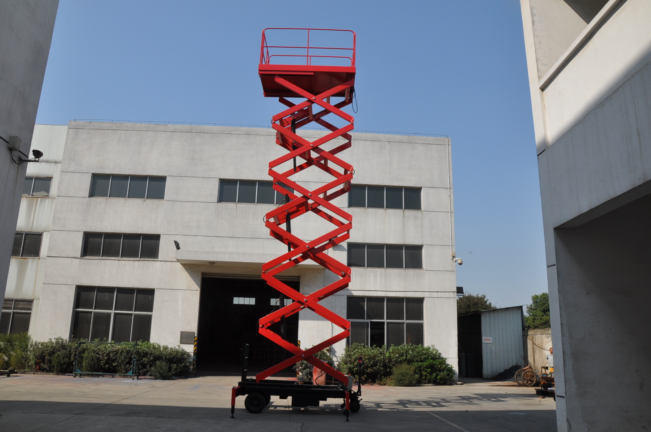 The scissor lift is in scissor structure with steel material