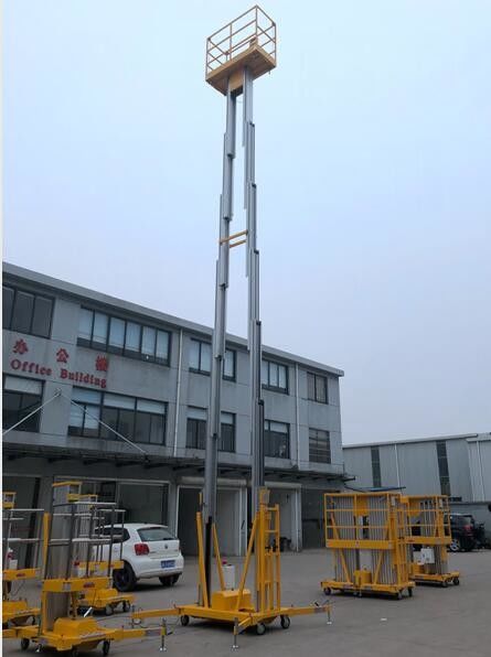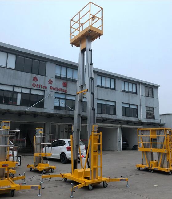 By the mast quantity: single mast, double mast, triple mast, quadruple mast and six masts (four plus two) are ranked in the product range of man pushing around aerial work platform.