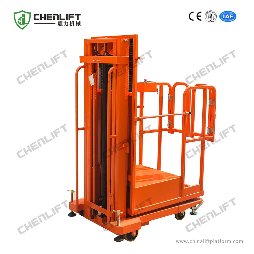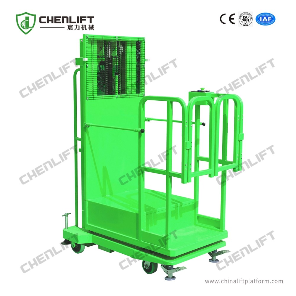 Semi-electric Aerial Order Picker is widely used in the fields of hotel, building, warehouse, library, supermarket rack, workshop, elevator portal, supermarket, subway station, and other office building high altitude maintenance.