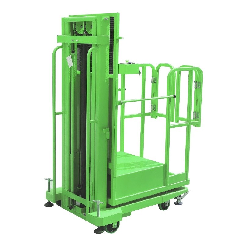 Semi-electric Aerial Order Picker is widely used in the fields of hotel, building, warehouse, library, supermarket rack, workshop, elevator portal, supermarket, subway station, and other office building high altitude maintenance.