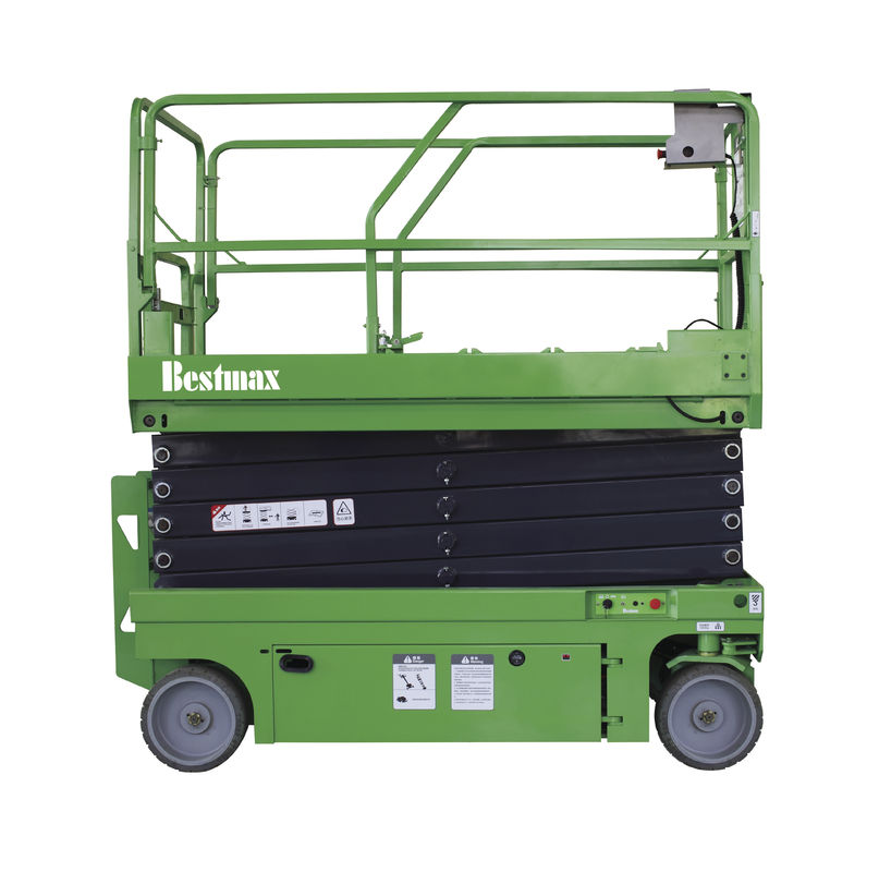 This machine is used to lift people to the high places to work. It can provide AC power on the platform so that people can bring the electrical tools with them. Unlike an articulating lift that offers a degree of horizontal outreach, electric scissor lifts are a flat platform that travels straight up and down.