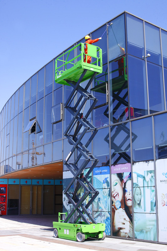 The moving of this Self-propelled Scissor Lift is driven by Hydraulic Motor and DC is the power to the lifting of this Self-Propelled Scissor Lift. This machine is quite popular among our customers, as it compares to the Fully Electrical Scissor Lift, the price is more competitive. As there is no need for the outriggers, so it can be used in the narrow space.